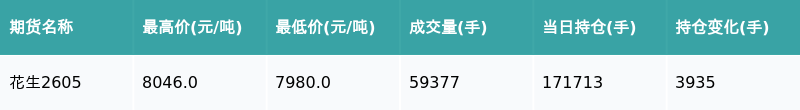南财智讯3月11日电,盘后期货数据显示,郑州商品交易所的花生主力合约收涨0.78%,收盘报8034.0元/吨,日内资金流入2753.21万元。其他相关指标见下表: